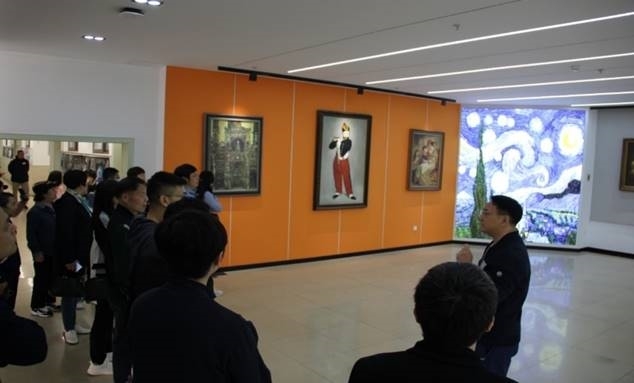 (图为:王华校长介绍用世界名画打造的艺术空间和用中国传统文化元素打造的阅读空间)