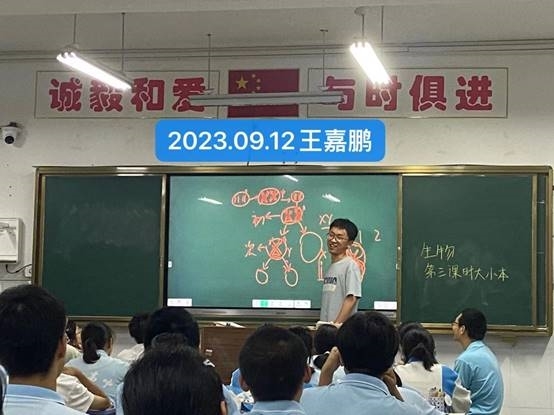 首先,为了调动他们的内驱力,我们举办了理想信念教育、生涯规划等班会,借助北斗团队的功勋事迹,引导同学们看到背后所需的人才应具备的素质,扩展介绍相关专业,激发学习兴趣。平时经常打印一些把学科知识与生活有联系的文章材料贴在班级前后,供同学课下自由阅读了解。