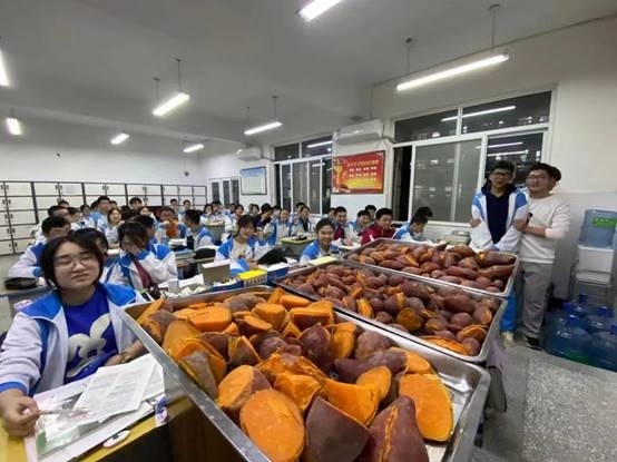 班级内,以各种节日、社会热点事件为载体组织班会和微班会,带同学们进行思想碰撞,以期达到知礼明义的教育目的。比如端午节,举办包粽子活动,我邀请女寝生活老师到班级来,现场教学,同学们既体会到了节日里亲自动手的乐趣,又拉近了与生活老师的距离。在热点事件发生时,举办小型的辩论赛,同学自行组队,据理力争,论证自己的观点。期末为每位同学手写评语,与同学们进行贴心的交流。经过一季努力,秋天收获了大量的红薯,麻烦食堂帮忙煮过以后,在班级里召开 “劳动归来话丰收” 主题班会,分享劳动果实。