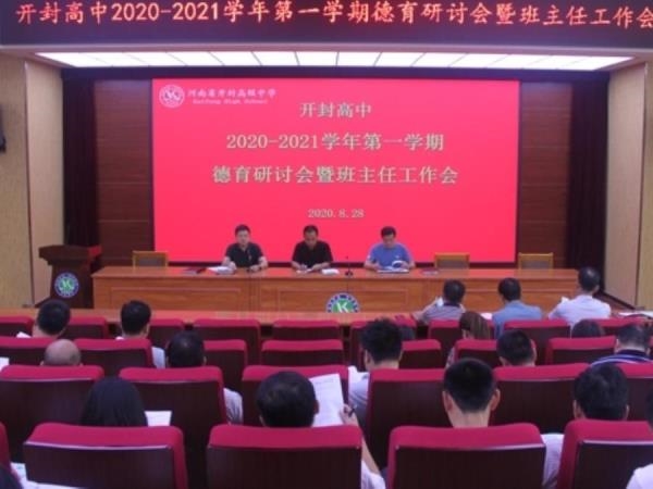 2020年8月28日下午,开封高中东校区召开新学期德育研讨会,主管副校长李振华到会并讲话,参会的还有学生处主任苗森、副主任张辰贝以及三个年级全体班主任,会议由苗森主持。李振华副校长在讲话中强调了德育在学校教育工作中的核心地位和班主任工作的重要性,他指出,只有在反思中不断总结,才能提高德育工作水平。他还对德育工作和学生管理工作以及班主任的成长发展做了安排部署。张辰贝主任结合实例详细解读了新修订的《开