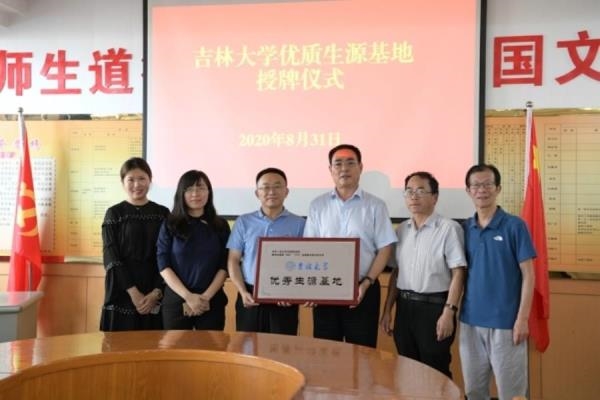 2020年8月31日下午,吉林大学新能源与环境学院党委书记汪祥松,副书记温卓,环境科学系副主任段海燕教授一行,在开封高中东校区会议室举行“优质生源基地”授牌仪式。开封高中校长顾伯宇,副校长乔国颖,督导室主任、招生负责人苏新明参加了授牌仪式。首先,顾伯宇校长代表学校对汪书记一行的到来表示热烈的欢迎,顾伯宇指出名牌大学和优质高中的合作是大学选拔优秀生源和高中培养拔尖人才,谋求双方高效快速发展的最佳途径