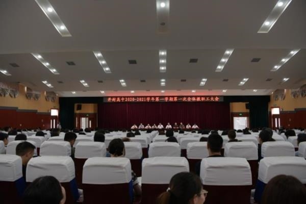 8月23日下午3时,开封高中2020—2021学年第一学期第一次全体教职工大会在西校区报告厅召开,会议由党委书记耿振勇主持,校长顾伯宇出席并发表讲话。会议开始,新入职教师逐一向大家作自我介绍,青年教师代表着教育的希望,代表着开高的未来,全体教职工以热烈的掌声欢迎新同事。随后,耿振勇通报了新学期领导班子分工和部分中层干部、年级主任的变动情况。顾伯宇在讲话中对暑假期间各项工作进行了回顾和总结,并从干部