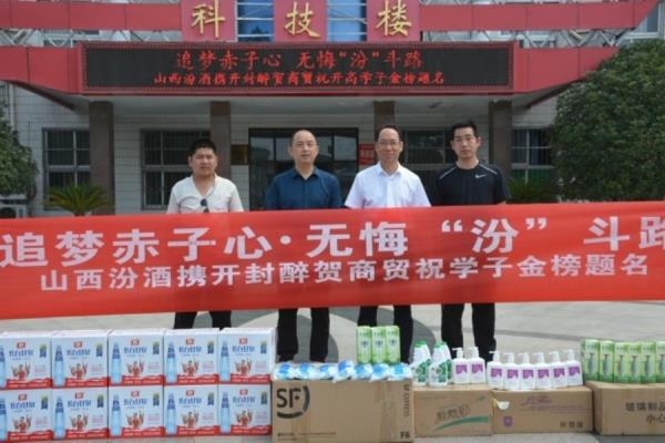 高考来临前夕,7月5日上午,山西汾酒携开封醉贺商贸向开封高中捐赠口罩、洗手液、消毒液等物资,为即将到来的高考助力,祝开高学子金榜题名。捐赠仪式上,开封醉贺商贸经理赵家杰表示让爱心接力下去,希望开高学子把爱心化作行动,努力学习,回馈社会。副校长马分产代表学校接受捐赠,并向开封醉贺商贸对学校高考工作给予的大力支持表示感谢。(摄影:郑宏志 审核:李建威)