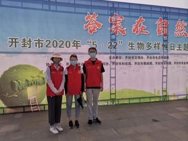 为深入学习贯彻习近平生态文明思想,充分展示开封市自然保护区成就,普及生物多样性保护知识,提高公众生物多样性保护意识,营造全民参与生物多样性保护氛围,5月22日,开封市文明办、开封市生态环境局主办的 2020年国际生物多样性日主题活动“答案在自然”在开封市大梁门外城墙公园内举行。我校生物教师杨芳芳,王晨,刘茜雅作为志愿者参加此次活动。活动开始后,群众代表宣读《2020年“国际生物多样性日”倡议书》,提出保护生