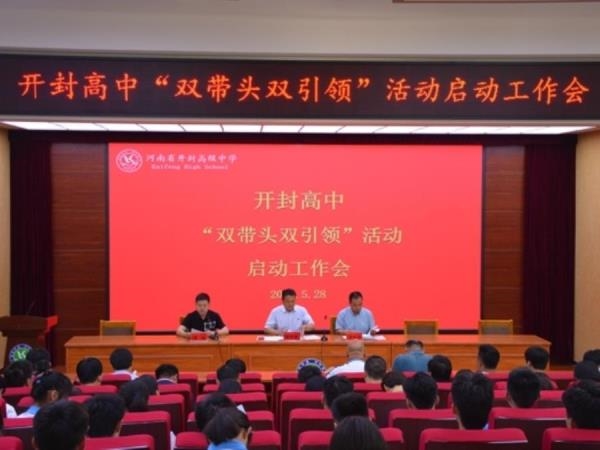 强健的体魄是学习的保障,而读书习惯的养成是丰富灵魂的必经之路, 为倡导社会文明健康新风尚,丰富我校全国文明校园创建形式,开封高中开展“双带头双引领”活动启动工作会。开封高中党委书记耿振勇、副校长李振华和各处室各年级正副主任、全体教研和备课组长以及三个年级各班班长和团支书参加了会议。会议由学生处主任苗森主持。李振华副校长首先宣读了开封高中《关于在全校范围内开展“双带头双引领”活动的通知》及相关附件文