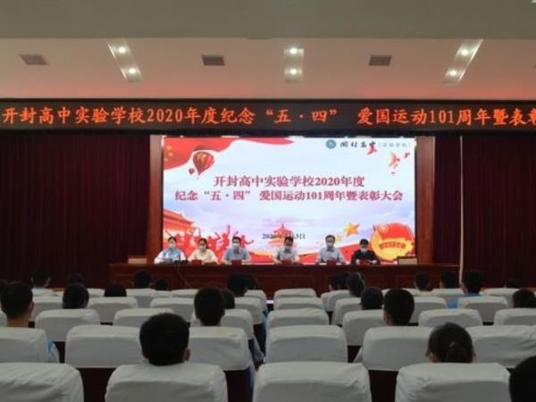 5月4日下午,开封高中纪念“五四”爱国运动101周年活动暨表彰大会在报告厅举行,各班班长、各支部团支书、组织委员到场参会,其他支部成员在班级教室收看直播。现场与会的领导还有开封高中党委书记耿振勇,副校长李振华、团委书记苗森。大会由学生处副主任娄渊中主持。会议在威武庄严的国歌中开始。苗森宣读《关于表彰2019年度开封高中先进团组织和个人的决定》,东校区2001团支部等15个团支部被授予“开封高中五四