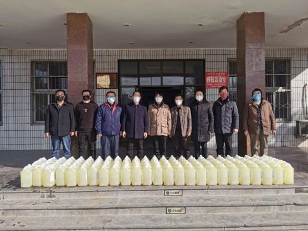 2月10日上午,我校2112班学生家长、东大化工有限公司厂长庄六星,西校区2106班学生家长、东大化工有限公司副厂长苗红振为我校捐赠84消毒液1吨,开封高中副校长马分产代表学校接受捐赠,并表示感谢。两位热心市民以实际行动全力参与到抗击疫情的战斗当中,为疫情防控工作献心献力,为开封高中全体师生捐献爱心,协助学校创造安全的学习环境。相信在社会各界的共同努力下,我们一定能够战胜疫情,让学生早日回到学校上