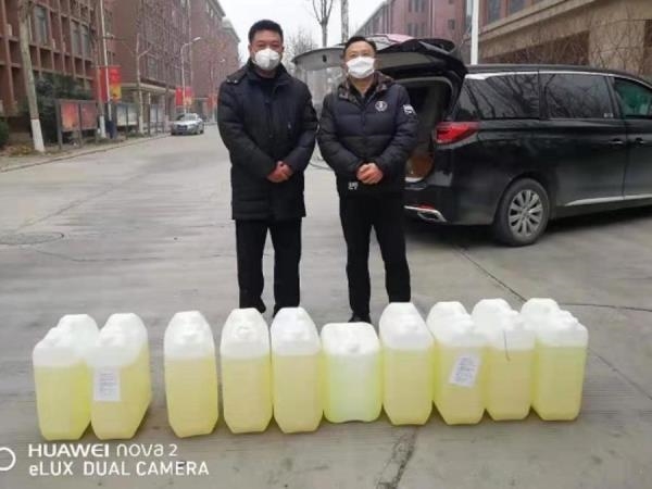 2月1日,我校学生家长、开封市洁诺医疗科技有限公司魏先生及2103班韩昊锦的姑姑韩女士分别为我校捐赠了84消毒原液,两位家长用自己的行动协助学校,共同努力保障开学后全校师生的健康。让我们携起手来,共同努力,共渡难关!(摄影:马珂 审核:王新国)