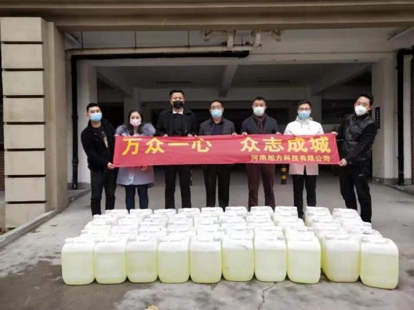 查看详情2月5日下午,河南旭方科技有限公司董事长赵文涛代表公司为我校东、西校区分别捐助84消毒液各1吨,开封高中校长顾伯宇代表学校接受捐赠,并表示感谢。河南旭方科技有限公司以实际行动全力参与到抗击疫情的战斗当中,为疫情防控工作献心献力,为开封高中全体师生捐献爱心,协助学校为学生创造安全的学习环境。相信在社会各界的共同努力下,我们一定能够战胜疫情,让学生早日回到学校上课!撰稿:马珂摄影:郭磊 审核:宋全会