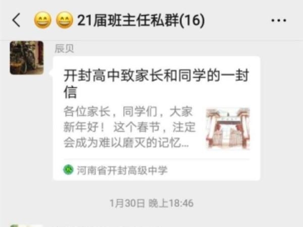 疫情汹涌庚子年,期盼转安殷殷意。八方支援热肠内,望鄂饮冰渴拂髀。劝君耐庵自隔离,利国不都生死以。劝君学习能自律,无用当下能蓄势。潜龙勿用不必惜,春日在田云雨起。为落实省教育厅防疫指挥部防疫期间网上教学的要求,结合市教育局和开封高中总体规划,开封高中实验学校2020届师生积极展开停课不停学的实践。 1月30日,班主任组建好班级学习交流群,并提前调整好课表, 1月31号开始教师通过交流学习群布置作业,