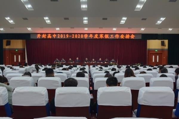 2020年1月17日农历腊月廿三,北方的小年,也是开封高中2019-2020学年度上学期的最后一天,整个校园都洋溢着节日的愉快气氛。下午四时许,全体教职工在西校区报告厅参加2019-2020学年寒假工作安排会。本次会议由副校长宋全会主持,校长顾伯宇出席会议并讲话。会上,首先由副校长马分产宣读了我校《关于2019-2020学年寒假工作的安排意见》文件,对寒假期间的工作做出了具体的安排部署。宣读完毕后