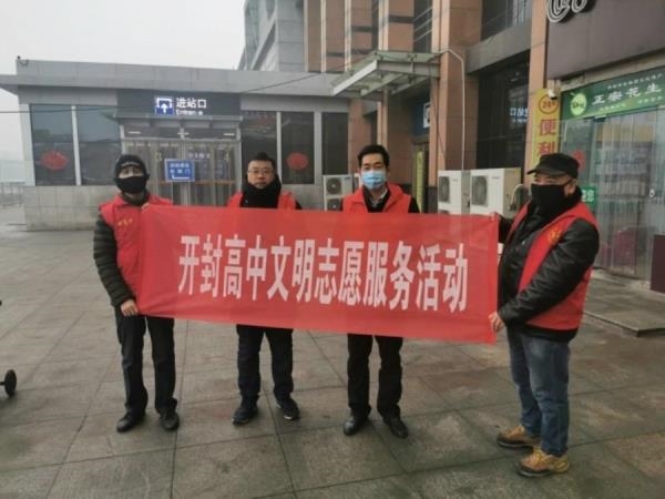 抗击疫情是一场硬仗,越是困难的时候,越需要大力弘扬团结互助、和衷共济的精神,战胜这场突如其来的没有硝烟的战争。2020年1月24日上午,为积极响应禹王台区文明办号召,开封高中办公室副主任李建威带领教师志愿者在火车站广场开展志愿服务活动。开封高中志愿者戴口罩上岗,着装整齐,严格管理,文明执勤,为需要帮助的旅客提供力所能及的助行服务,协助做好旅客防控疫情蔓延知识、乘车常识、铁路春运便民利民服务措施和旅
