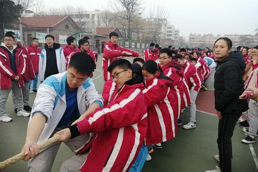 12月的冬日暖阳下,宽广的绿地操场上,一场场激烈而和谐的比赛正在进行,这里是青春的故事,这里是团结的故事,这里是友谊的故事。 为丰富同学们的课外生活,让孩子们体会到团结的力量,经过年级安排、体育组老师精心筹备,东校区2022届进行了历时两周的学生拔河比赛。本次比赛以班级为单位,抽签分组决定比赛顺序,实行淘汰晋级方式决出冠军班级。下午4点,篮球场上红色校服格外亮眼。比赛前裁判员向同学们讲解比赛规则,