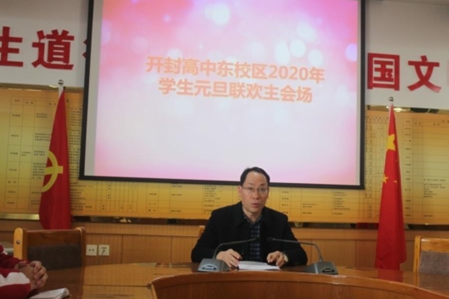 在2020年来临之际,为丰富班级文化生活,2019年12月31日下午,开封高中东校区各班举办了“庆元旦迎新年”联欢会。副校长马分产在新年贺词中总结了2019年我校学生、教师、学校取得的成绩,对新的一年进行了美好展望,之后由学生会各部部长和各学生社团送上节日祝福。各班都准备了丰富多彩、积极向上的节目,有歌曲、舞蹈、相声、小品、歌词秀、游戏等,形式多样,精彩纷呈,处处洋溢着对新年的祝福和期待,教室里挂
