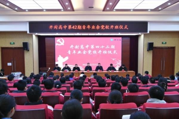 查看详情12月27日下午16:10分,开封高中第42期青年业余党校开班仪式在东报告厅举行。2023届共122名党校学员参加了开班仪式。我校党委委员、副校长尚嘉伟,党委委员、纪委书记李小记,校务委员荣海洋,学生处主任、团委书记苗森出席。会议由学生处副主任张辰贝主持。仪式在庄严的国歌声中拉开序幕。苗森向全体学员介绍了《开封高中青年学生业余党校的发展情况》,通过讲述开高历届学子的鲜活事例,鼓励同学们向优秀的学长