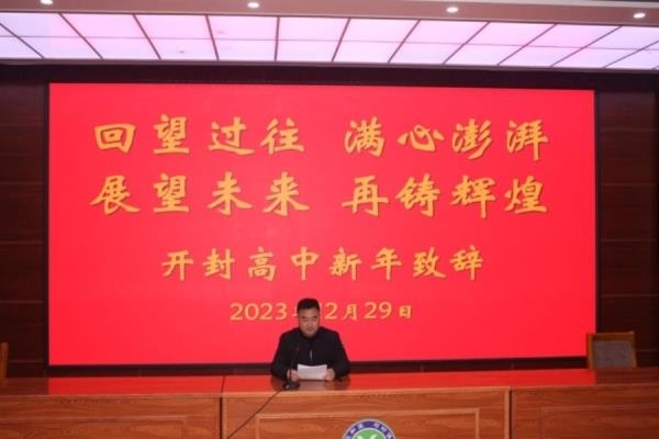 2024新的一年来临之际,我校师生齐聚一堂,共同庆祝新年的到来。本次活动旨在丰富校园文化生活,增进师生之间的感情,同时也是对过去一年辛勤努力的回顾与总结。活动在欢乐祥和的氛围中进行。首先,开封高中副校长尚嘉伟发表了新年致辞,代表学校向辛勤工作、刻苦学习了一年的老师们和同学们致以新年的问候。他回顾了过去一年学校取得的各项成绩,同时,也展望了新的一年,希望全体师生能够继续努力,再创佳绩!随后,全体校学