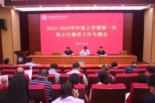 为更好地贯彻落实新学年学校工作报告,落实学校德育管理思想,加强班主任队伍建设,提升班主任管理水平,2023年8月24日下午,开封高中在报告厅召开了2023-2024学年度上学期德育工作专题会。副校长尚嘉伟、学生处主任苗森、副主任吴杰以及三个年级的班主任参加了会议。会议由吴杰主持。首先,苗森对上一学年的工作做了简单总结,对新学期学生管理及班主任工作谈了工作设想,他指出,班主任工作要着力常规管理,常规