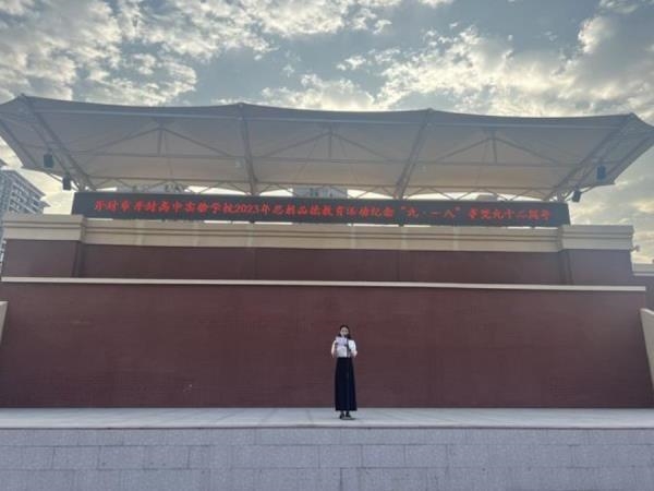为进一步弘扬社会主义核心价值观,激发学生圆梦中华的强烈愿望,表达学生热爱和平、反对侵略、实现民族伟大复兴的家国情怀。9月18日,开封高中实验学校举行了纪念“九一八”主题升旗仪式。伴随着庄严的国歌,五星红旗冉冉升起,全体师生肃立,向国旗行注目礼。高三年级语文组教师付晓晨作国旗下演讲,号召同学们要勿忘国耻、振兴中华,为中华之崛起而读书,为祖国之繁荣而努力,更应该把爱国之情转化为报国之情,让勤奋学习成为