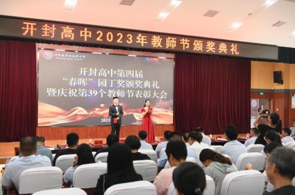 教育兴则国家兴,教育强则国家强。人民教师肩负着“为党育人、为国育才”的光荣历史使命,是新时代最值得尊敬的人。2023年9月10日,是第39个教师节。为进一步弘扬尊师敬师的良好风尚,建设一支“师德高尚、业务精湛、团结协作、开拓进取、甘于奉献”的高素质教师队伍,增强教师的光荣感、责任感和使命感,激励全校教师以更加饱满的热情投身于教育工作中。9月7日下午,我校隆重举行开封高中庆祝第39个教师节暨第四届“