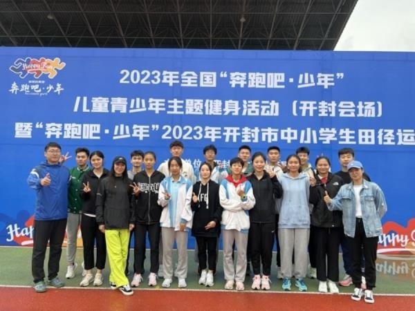 查看详情2023年6月2日-4日“奔跑吧——少年”2023年开封市中小学生田径运动会在开封市人民体育场隆重举行,开封高中田径代表队在领队尚嘉伟副校长,教练员朱琳、牛超群老师的带领下,运动健儿们凭借着顽强的斗志、拼搏的精神赛出了风采,取得了高中组团体总分第一名、高中组女生团体总分第一名、高中组男生团体第一名的的优异成绩。 (开封高中田径队部分队员)各单项获奖名单:王文娟 高中女子组100米栏 第一名