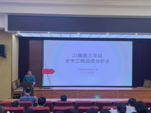 为全面分析总结三模考试成绩,进一步查漏补缺、鼓舞士气,有效备战下一阶段的高考复习,5月5日下午,开封高中东校区23届在东报告厅举行了高三年级全市三模成绩分析会。开封高中副校长尚嘉伟,教务处主任周金陈,学生处副主任张辰贝,年级主任赵向东出席会议,全体高三教师参加会议。会议由周金陈主持。周金陈从总分、上线情况以及通过与同类学校的比对,对高三考试成绩进行整体分析;又从各个班级临界生的角度进行详细的分析,