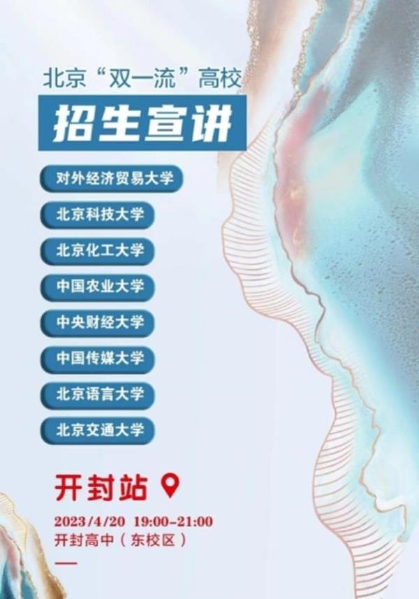 2023年4月20日晚上,北京八所“双一流”高校老师齐聚开高,为家长进行一场高校宣传推介会。他们是对外经济贸易大学、北京科技大学、北京化工大学、中国农业大学、中央财经大学、中国传媒大学、北京语言大学、北京交通大学。我校副校长马分产、督导室主任、招生与国际交流处负责人苏新明进行了热情的接待。晚上七点,东报告厅会场座无虚席,高校联盟宣传推介会准时开始。会议由苏新明主持,他首先介绍了到访的各个高校的老师