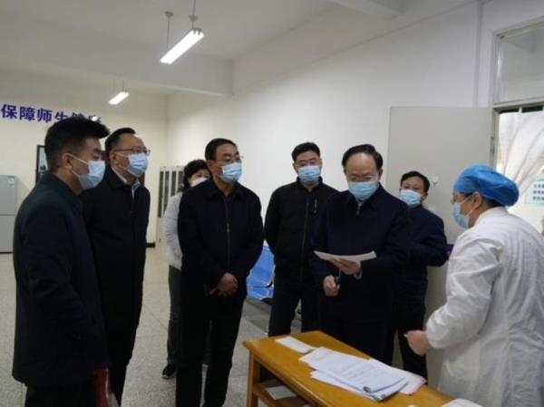 3月20日上午,市政府副市长刘震在市教育体育局党组书记、局长娄和彦等陪同下莅临我校督导检查全寄宿制学校疫情防控工作,党委书记顾伯宇,党委副书记、校长宋全会,党委副书记、副校长刘培兵等校领导接待并陪同检查。刘震一行察看了餐厅、医务室、防疫物资储备室以及学生寝室等场所,对疫情防控中的组织管理、重点区域人员排查、防控物资储备、防控知识宣传、卫生消毒等方面进行了全面、细致的了解。督导过程中,顾伯宇、宋全会