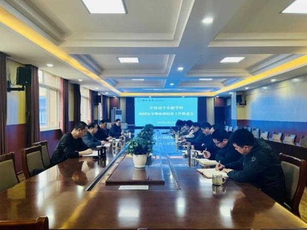 2022年3月21日,在我校会议室召开校园安全暨疫情防控工作推进会,开封高中党委书记顾伯宇,党委副书记、副校长刘培兵,副校长张志强,校务委员李沛,学校中层干部及年级主任参会,会议由刘培兵主持。刘培兵传达了开封市教体局疫情防控工作视频会精神,要求各部门做好学校疫情防控相关工作,规范操作程序,确保全校师生健康和生命安全,对师生员工晨午检,教室、寝室消毒,师生请假返校等方面进行强调。李沛要求门卫加强校门